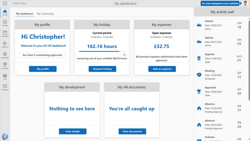 A comprehensive HR kiosk for employees, offering self-service functions, departmental community views, and seamless integration with Microsoft Teams for enhanced collaboration.